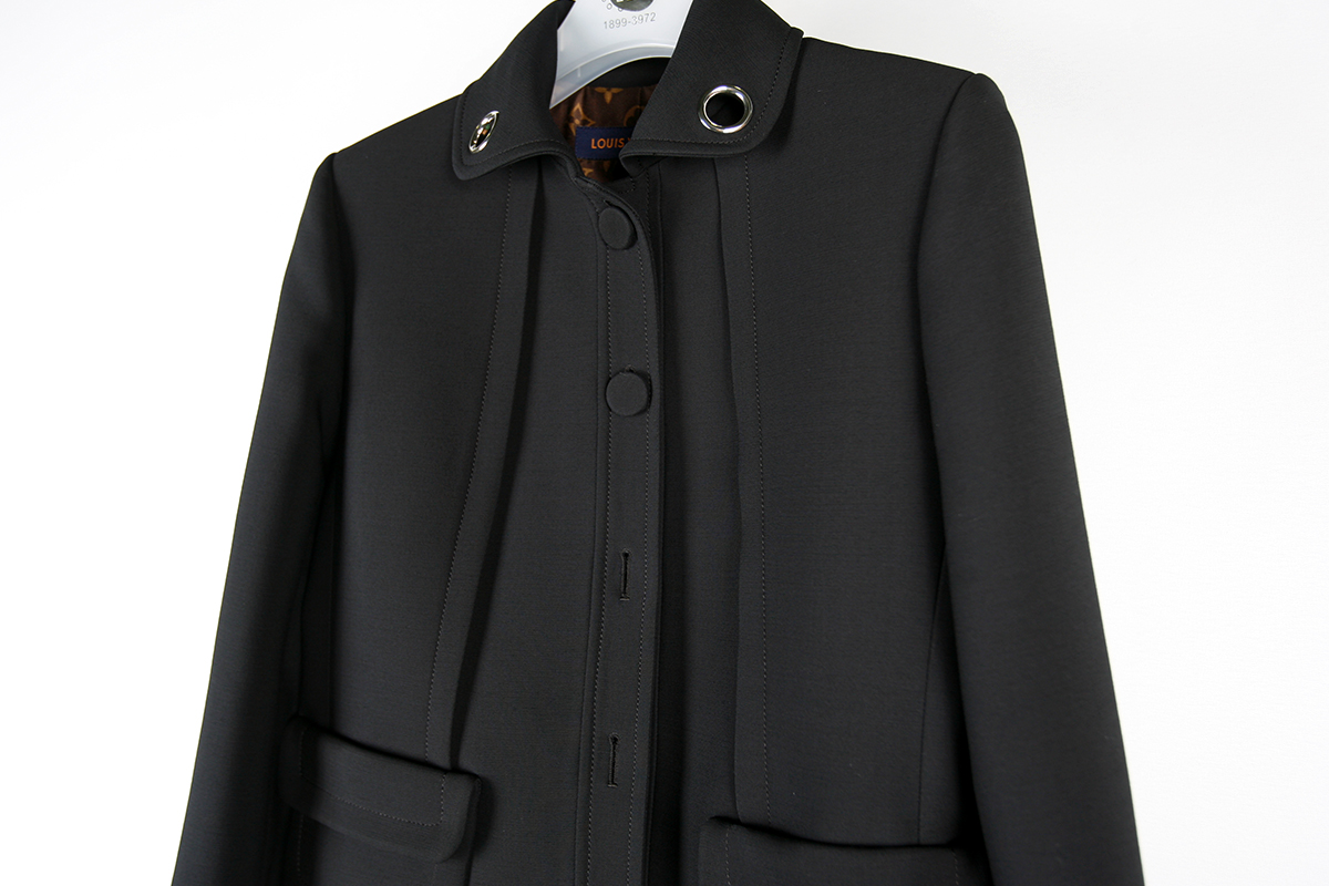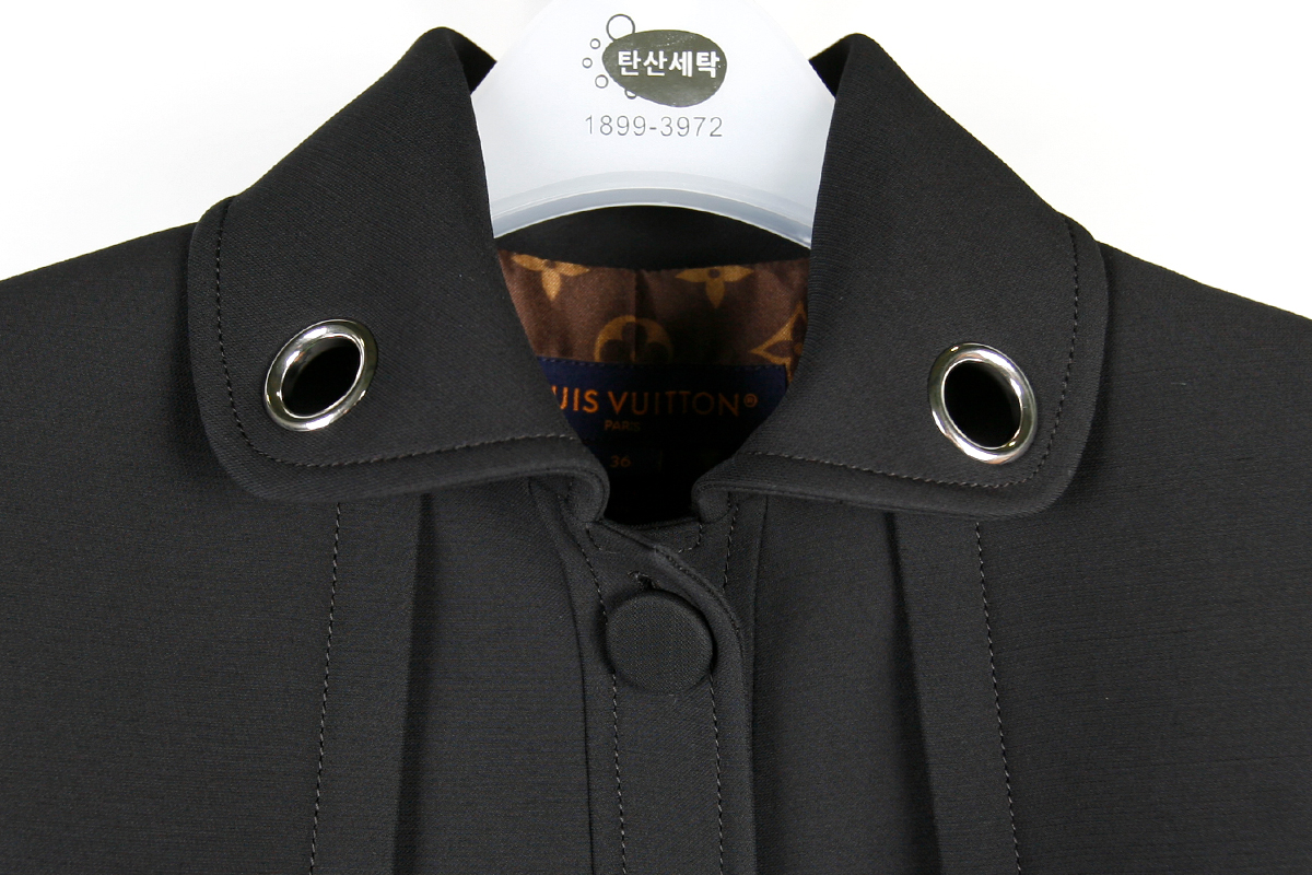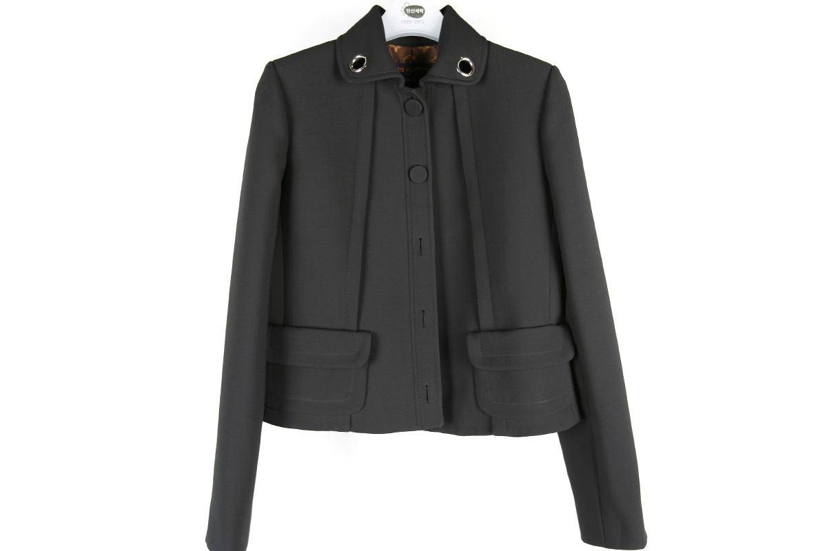 군더더기 없는 블랙 컬러 바탕에 루이비통 특유의 구조적 라인을 살린 재킷입니다.